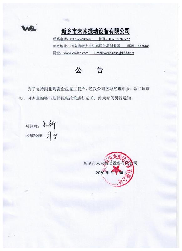 **先感謝各位客戶多年支持與厚愛(ài),深表謝意!此次疫情來(lái)勢(shì)兇猛,牽動(dòng)著每個(gè)國(guó)人的心,未來(lái)振動(dòng)為表達(dá)對(duì)新冠肺炎疫情防控工作的支持,盡一份綿薄之力,共盼春來(lái)!針對(duì)(湖北地區(qū))陶瓷市場(chǎng)客戶于2020年3月30日繼續(xù)享受,我司制定的開(kāi)發(fā)方案“客戶體驗(yàn)活動(dòng)”我們祈愿春暖花開(kāi),疫情早日結(jié)束,在此,向所有防控一線的醫(yī)務(wù)、防疫工作者致敬!中國(guó)加油!